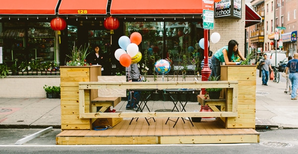 Two of the organization’s equitable public space development include the 10th Street Plaza and the Chinatown Parklet project. As part of its Neighborhood Reconnecting Project, the 10th Street Plaza’s open space and location atop of a bridge sitting over Philadelphia’s Vine Street Expressway, revitalize the once underused space and make it more family-friendly public space for the Chinatown neighborhood. A new pergola awning was constructed in the center of the plaza creating a shady retreat over benches and tables as an amenity for residents. Two enormous Chinese guardian lions (Foo dogs) are placed at both sides of the plaza symbolizing the protective power of the gateway. The Chinatown Parklet project is a public space located at the core of Chinatown. It’s goal is to provide residents the space to sit, eat lunch, drink tea, or simply relax in the midst of the bustling commercial corridor of the neighborhood.